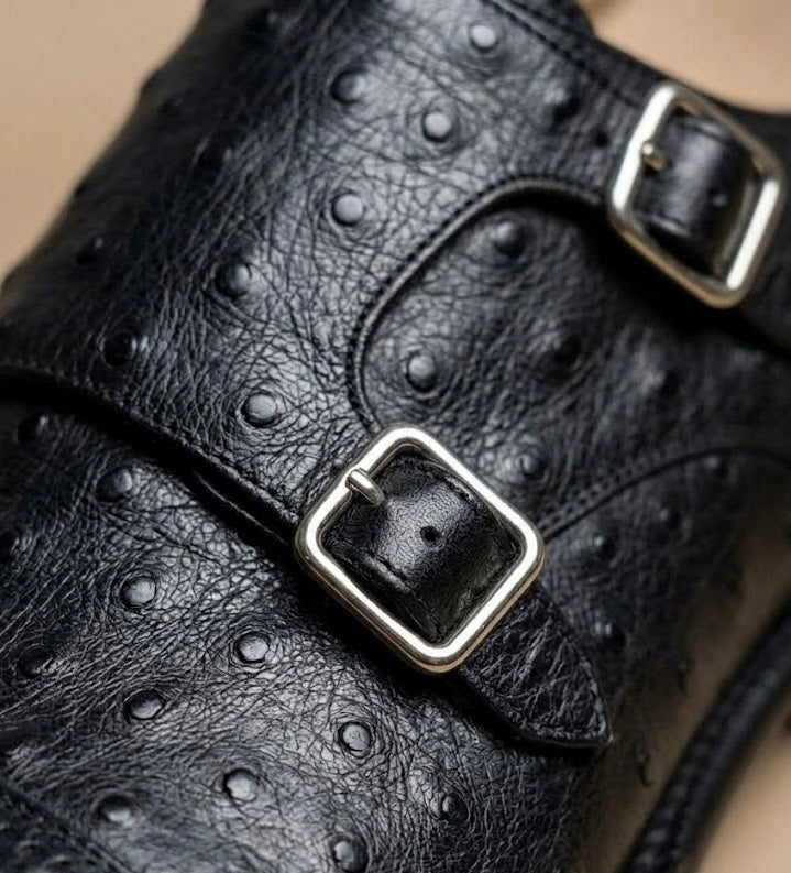 Black ostrich skin monkstrap