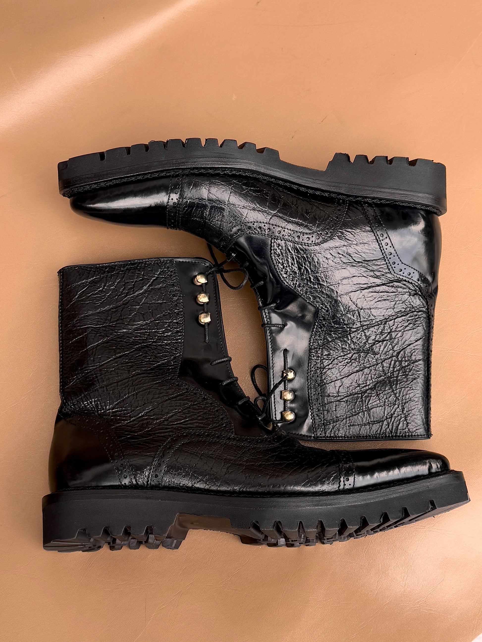 Our shoes are crafted through a meticulous process, starting with premium leather selection, precise cutting, and expert stitching. Each pair undergoes careful shaping, lasting, and hand-finishing, ensuring durability, comfort, and timeless style that reflects true artisanal craftsmanship.