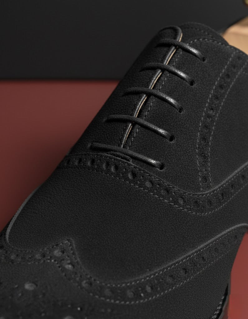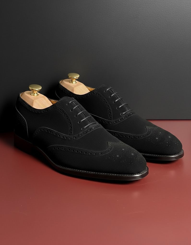 Black suede leather wingtip oxford